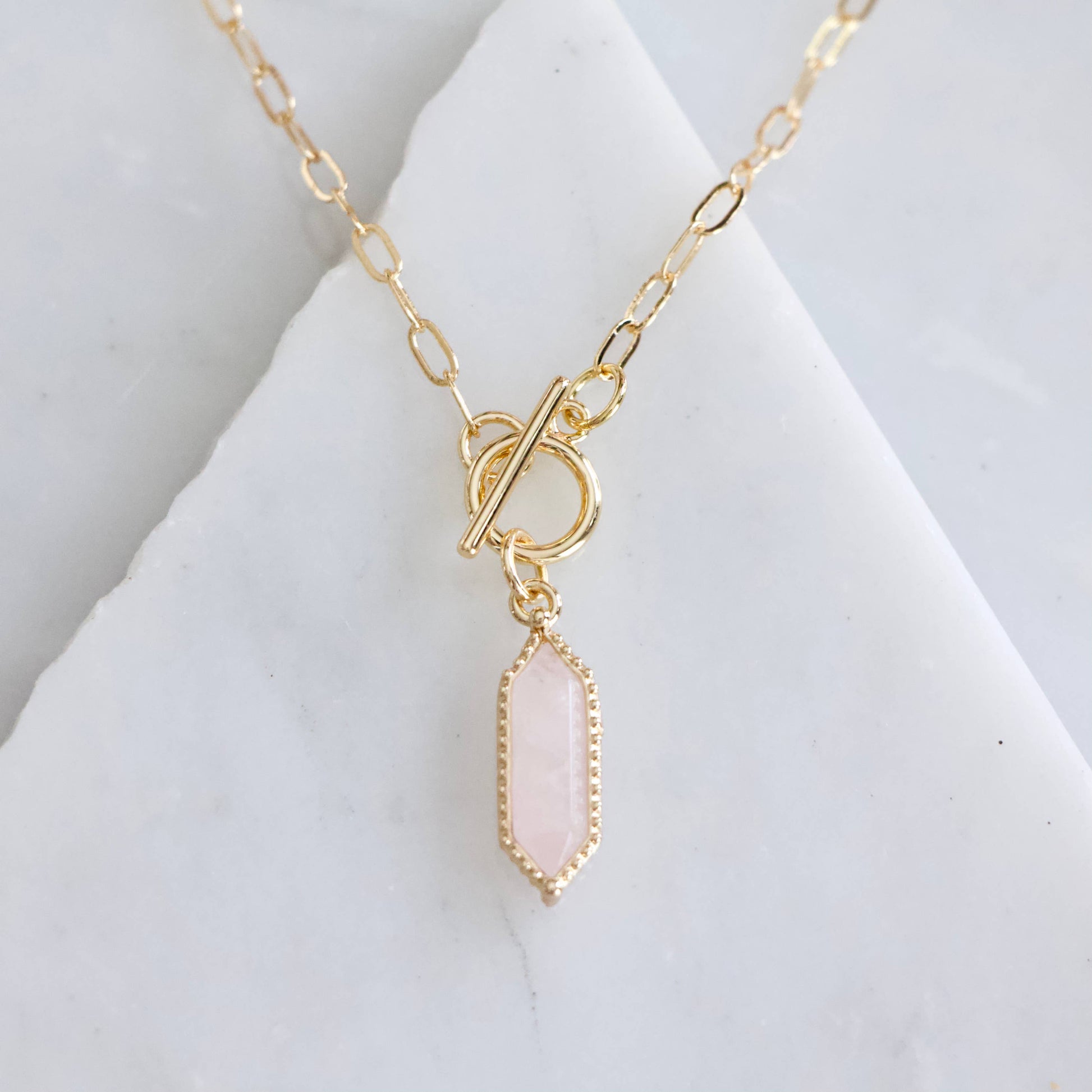 Faceted Quartz, Lapis Lazuli, Rose Quartz, Koren Jade Toggle Necklace