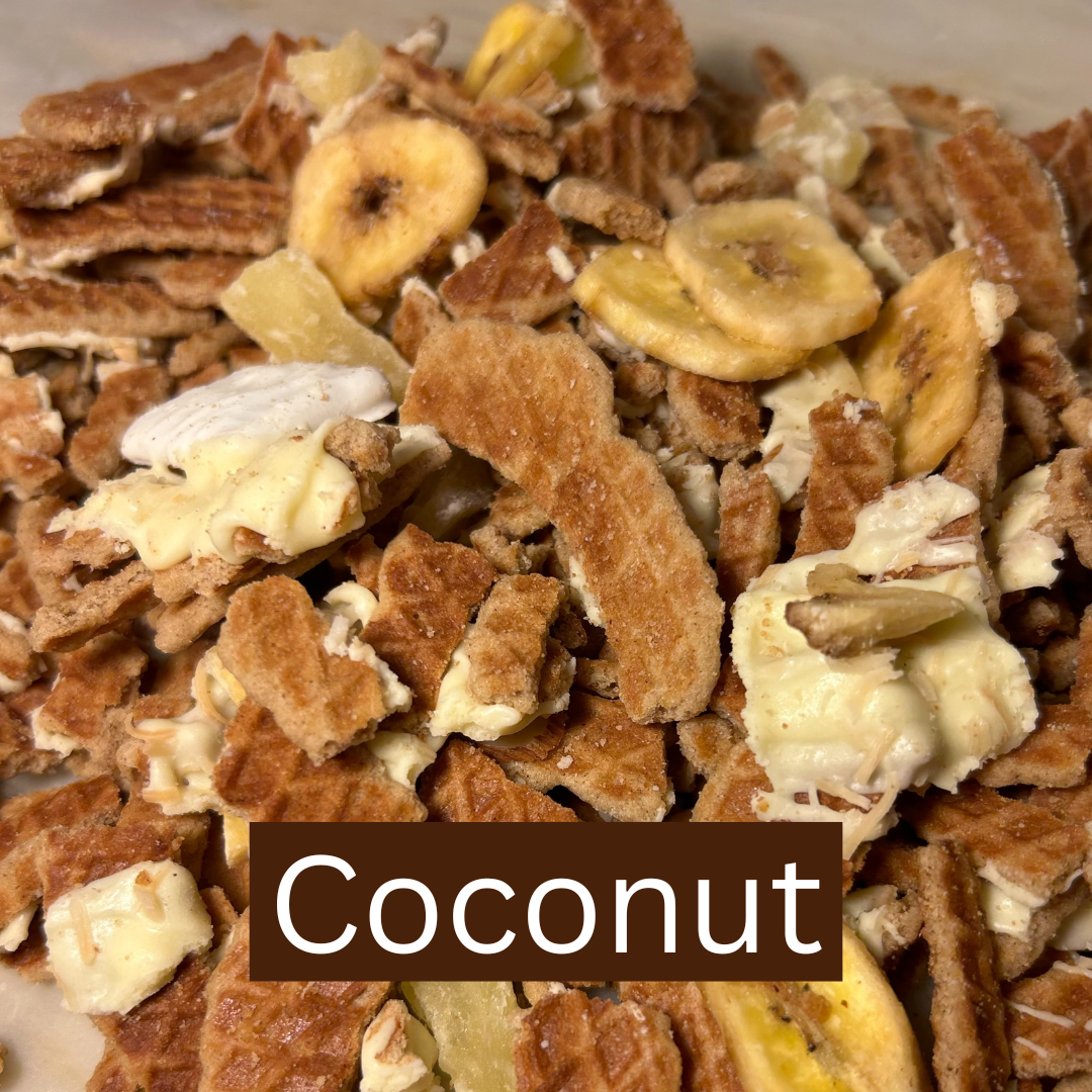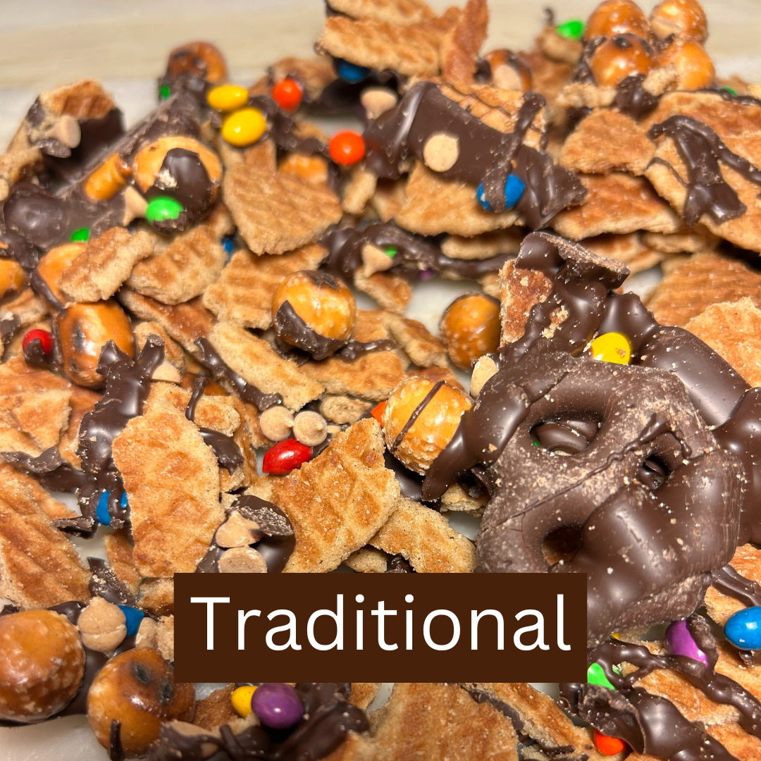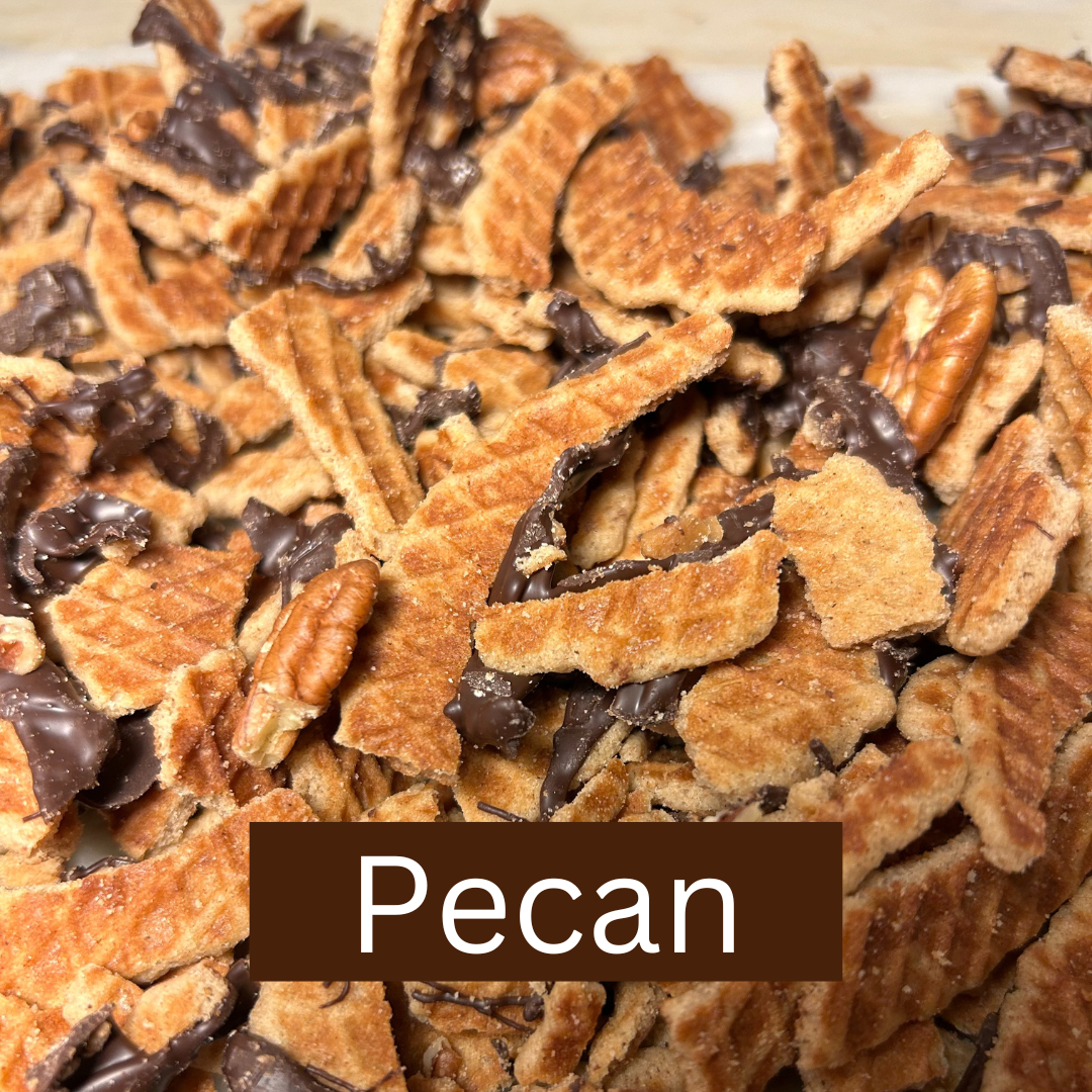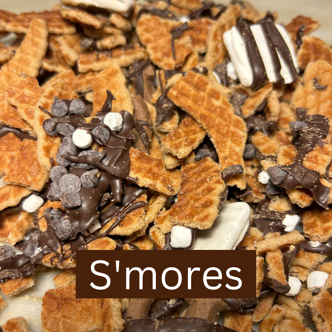 In an effort to create less waste, we mix our delicious Stroopie "crumbles" with goodies like chocolate, candy, pretzels, and seasonal flavors (i.e. Pumpkin Spice).
