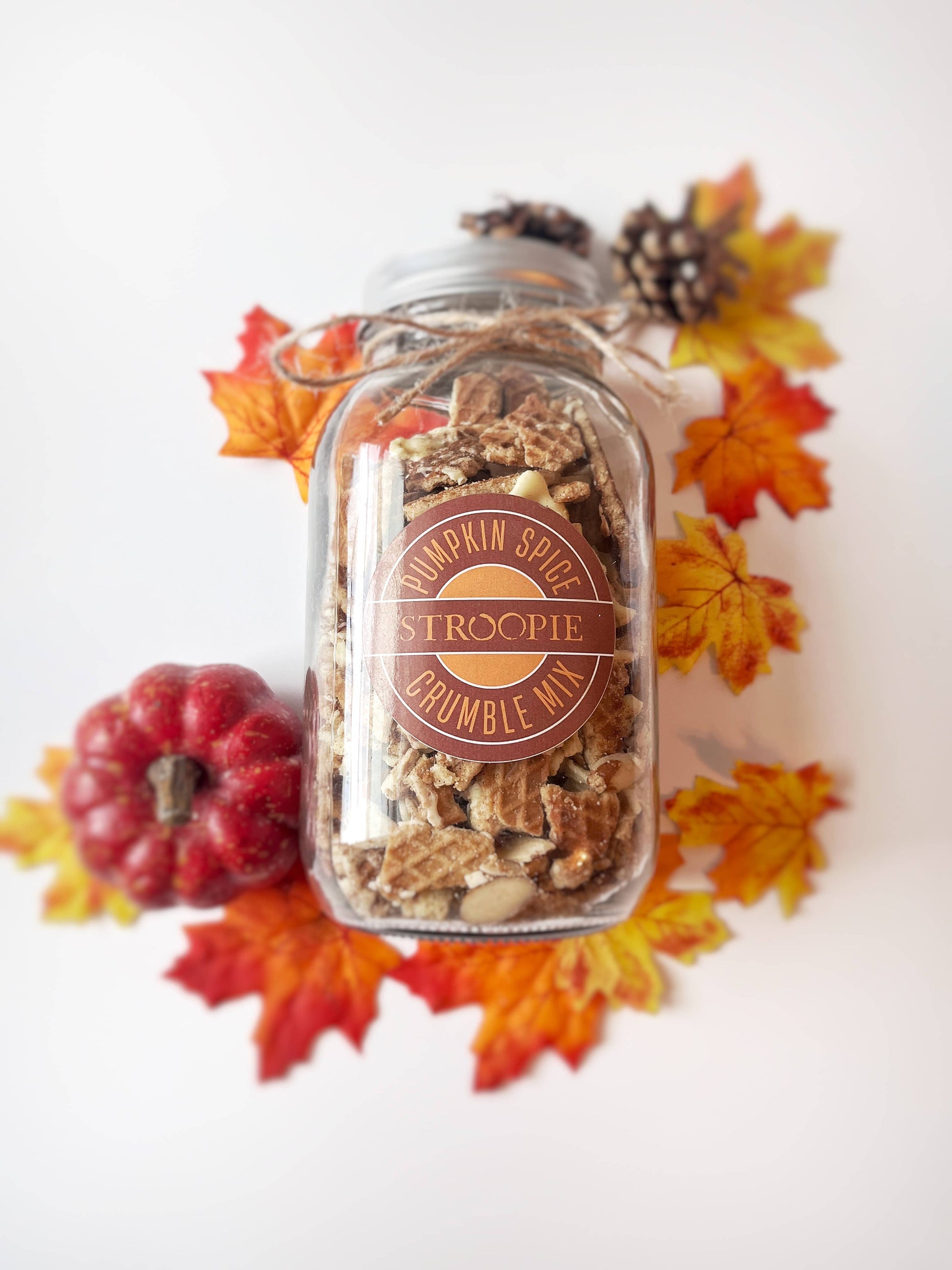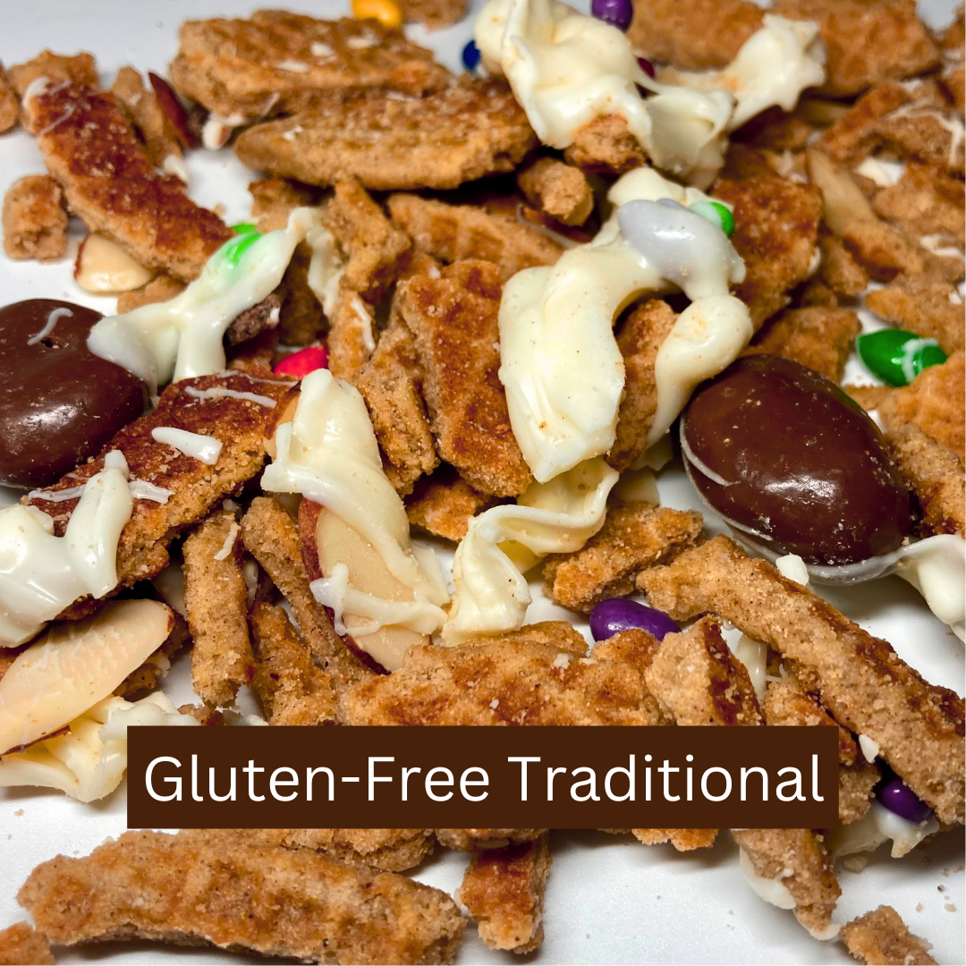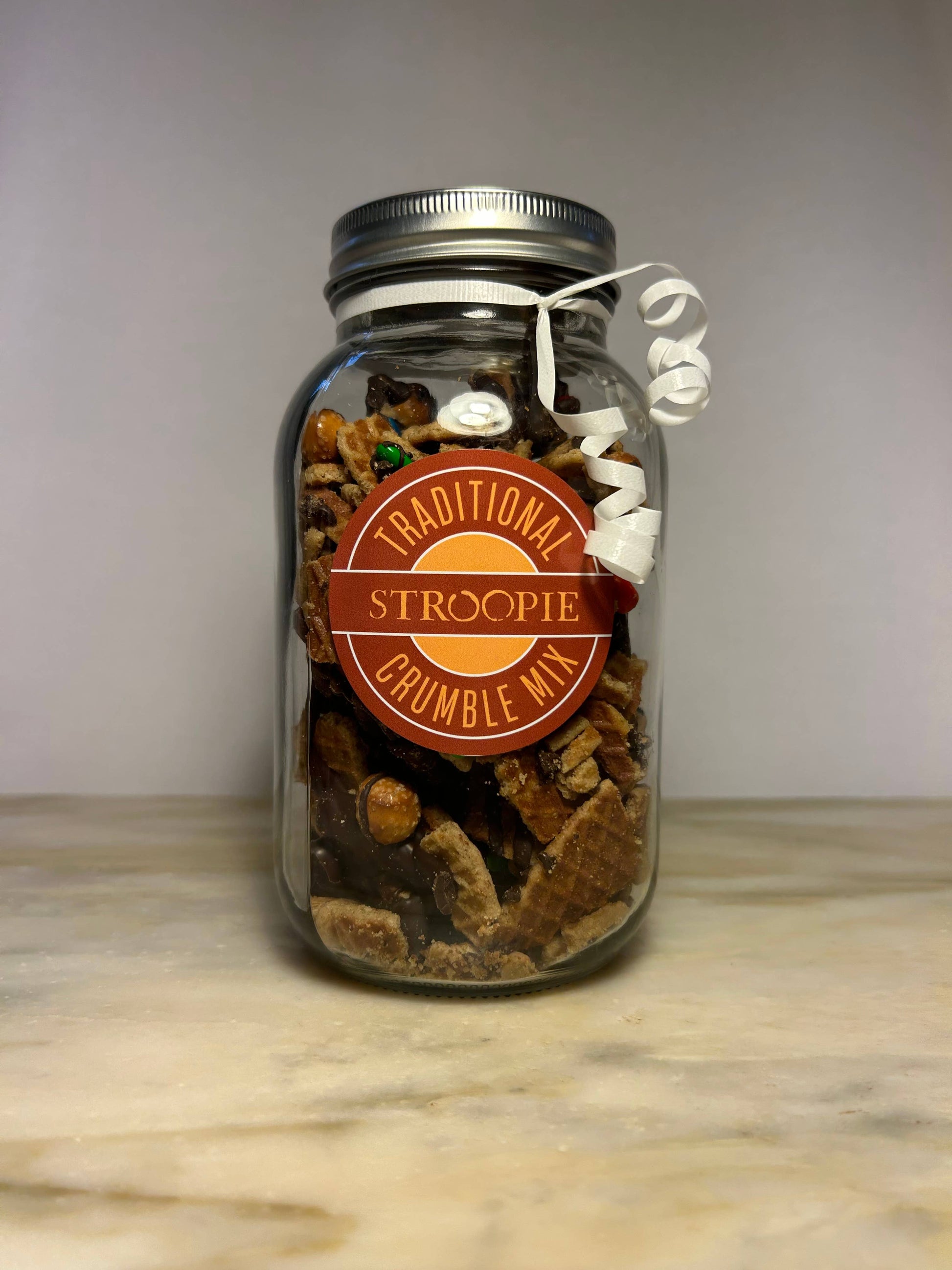 In an effort to create less waste, we mix our delicious Stroopie "crumbles" with goodies like chocolate, candy, pretzels, and seasonal flavors (i.e. Pumpkin Spice).