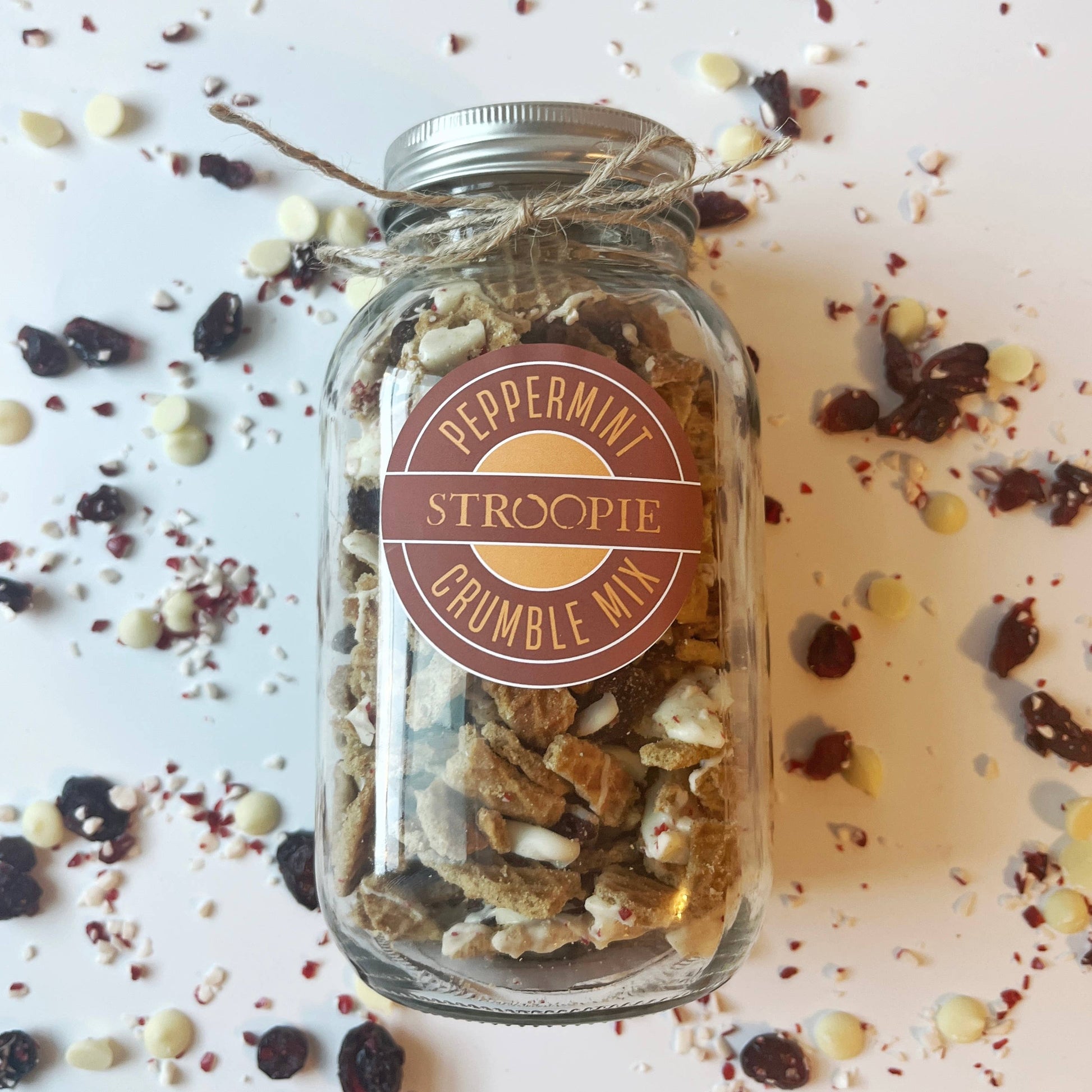Using the edge pieces of our delicious Stroopwafel cookies to make another great product for your shelves, these Stroopie Crumble Mixes make for an awesome Christmas gift or on-the-go snack.